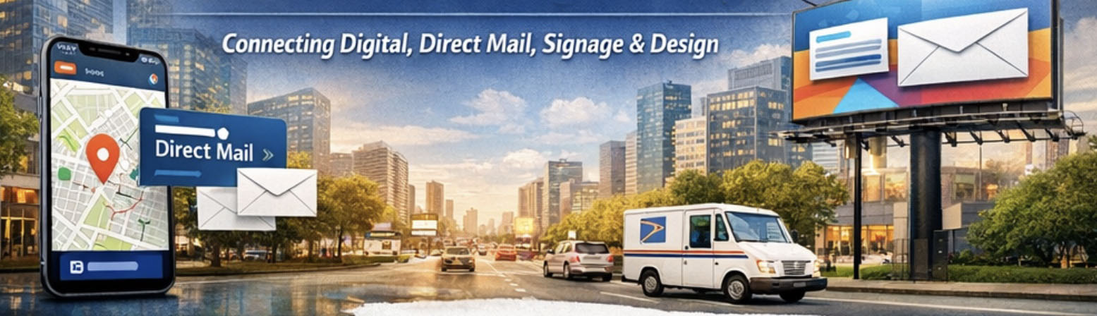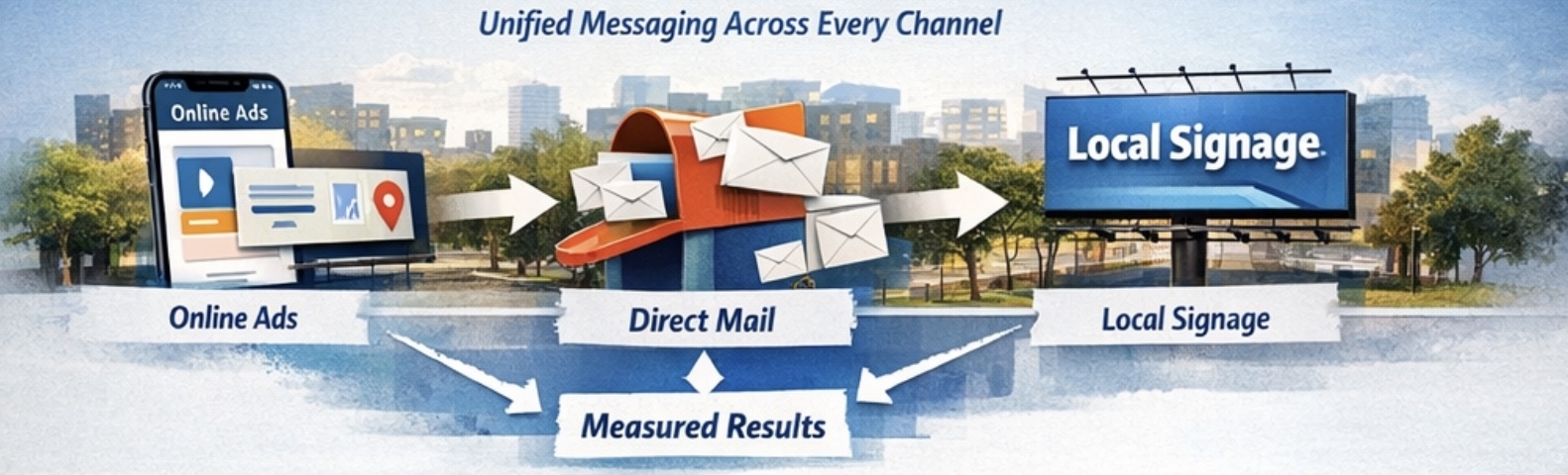 We combine digital advertising, direct mail, signage, and graphic design into one